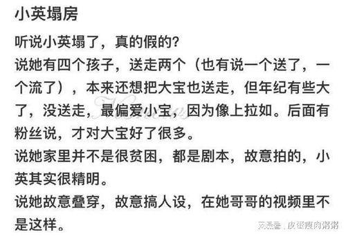 就在大家以为小英会一直这样红下去的时候,突然间,一个大瓜砸了下来。有网友爆料,称小英在背后竟然有不可告人的秘密!这个消息一出,瞬间引发了网友们的热议,大家纷纷猜测小英的真实面目。